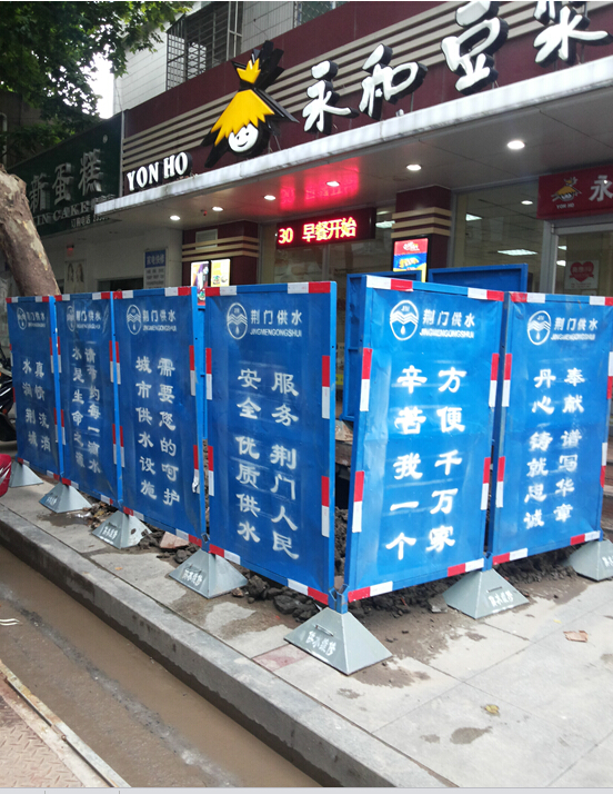 維修處本著經(jīng)濟(jì)可行的原則對原來的55塊安全警示牌進(jìn)行了改造,制作了新式底座,對牌面進(jìn)行了打磨拋光上漆。利用牌面進(jìn)行供水公益廣告宣傳,噴涂了“城市供水設(shè)施需要您的呵護(hù)”、“水是生命之源,請節(jié)約每一滴水”、“辛苦我一個(gè),方便千萬家”等公益廣告。這一廣告載體展示了企業(yè)形象,成為街頭巷尾的一道靚麗風(fēng)景線,收到了一致好評。