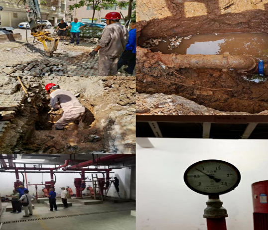 可正當進行試壓時,小區(qū)消防控制中心卻傳來一個出人預料的“噩耗”,消防管網(wǎng)壓力居然為0,隱患仍未消除!看著滿身疲憊的“戰(zhàn)友們”,王經(jīng)理鼓勁到“大家先休息,我們再來想辦法。”集團相關(guān)部門獲悉情況后,由生產(chǎn)安全部攜手營抄中心和潤澤公司等多家單位,主動參與會戰(zhàn),同時致電消防部門給與技術(shù)指導。