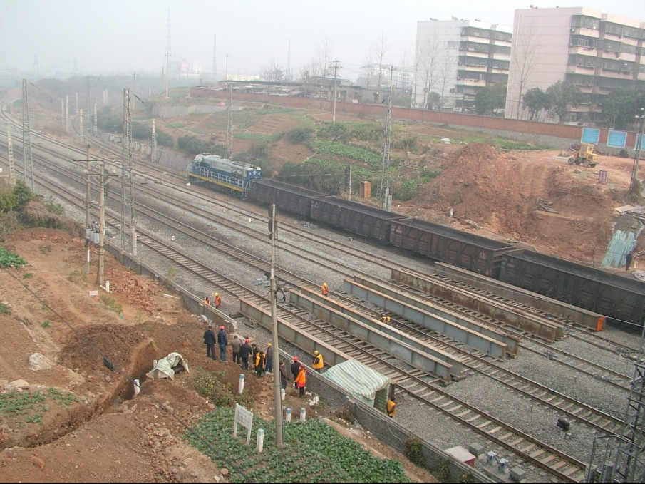經(jīng)供水公司與鐵路部門協(xié)調(diào),武漢鐵路局、武鐵設(shè)計(jì)院、西南設(shè)計(jì)院擬訂采用架空項(xiàng)進(jìn)法穿越焦柳鐵路線5股道,定制鋼筋砼套管,管節(jié)間采用鋼板內(nèi)漲圈接口。在調(diào)查鐵路信號、通信光電纜徑路及數(shù)量,在確保鐵路運(yùn)輸安全的原則下進(jìn)行防護(hù)設(shè)計(jì)。武漢鐵路局工務(wù)檢測所編制施工圖。項(xiàng)目委托武鐵江騰公司具體施工。供水公司則完成穿管、銜接施工。