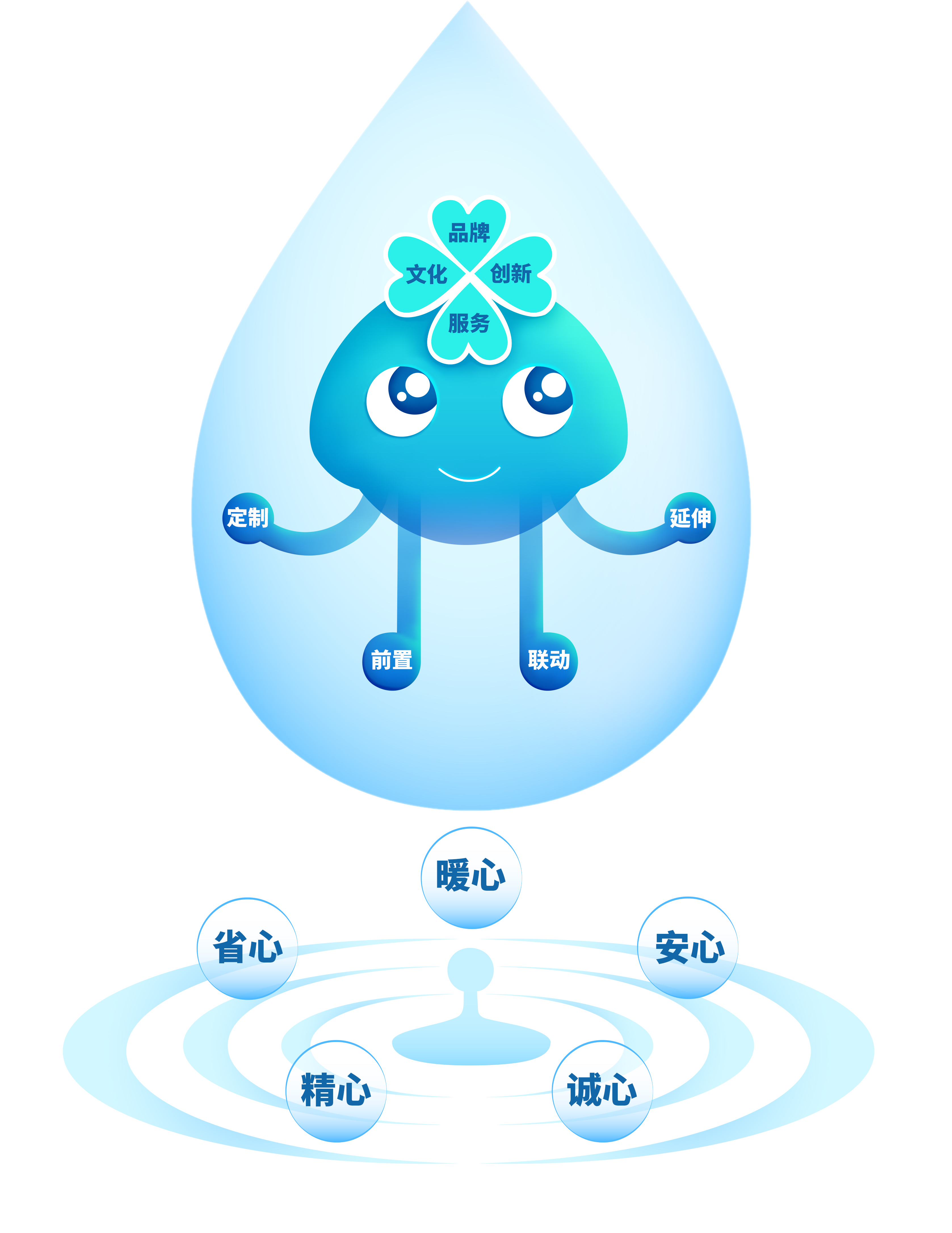 隨后,集團(tuán)不斷總結(jié)服務(wù)經(jīng)驗(yàn)做法,提出“五心”服務(wù)概念——精心、誠(chéng)心、省心、安心、暖心。在此基礎(chǔ)上,集團(tuán)以品牌為引領(lǐng),以文化和創(chuàng)新雙輪驅(qū)動(dòng),以服務(wù)筑基,打造“水晶靈”五心服務(wù)模式。通過(guò)實(shí)施“四個(gè)服務(wù)”(前置服務(wù)、定制服務(wù)、延伸服務(wù)、聯(lián)動(dòng)服務(wù)),向社會(huì)傳遞“五心服務(wù),點(diǎn)滴為您”的服務(wù)理念,實(shí)現(xiàn)從用戶滿意到用戶忠誠(chéng)的跨越。
