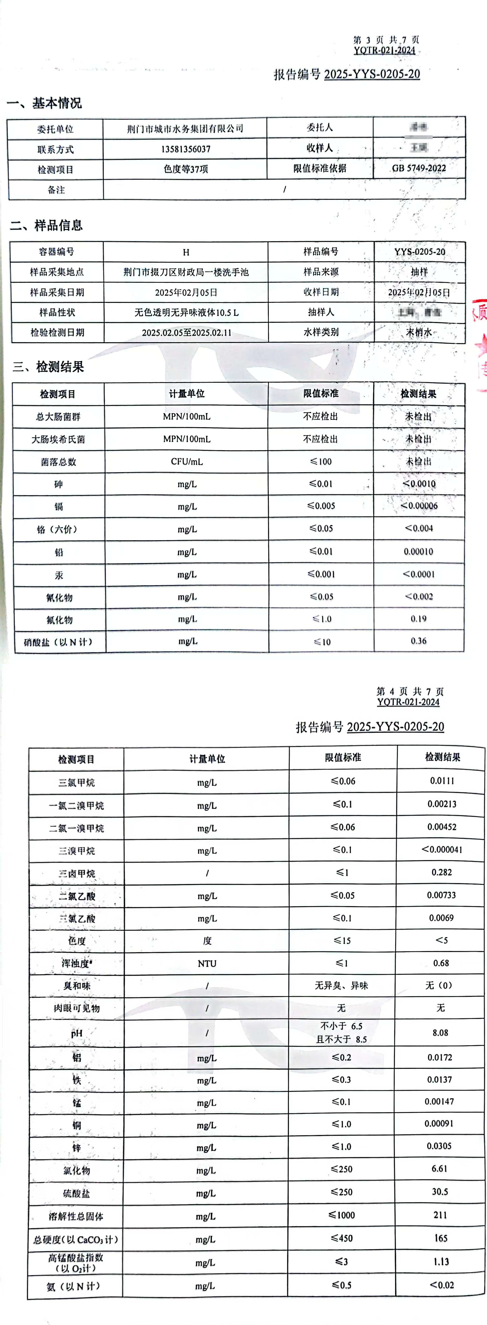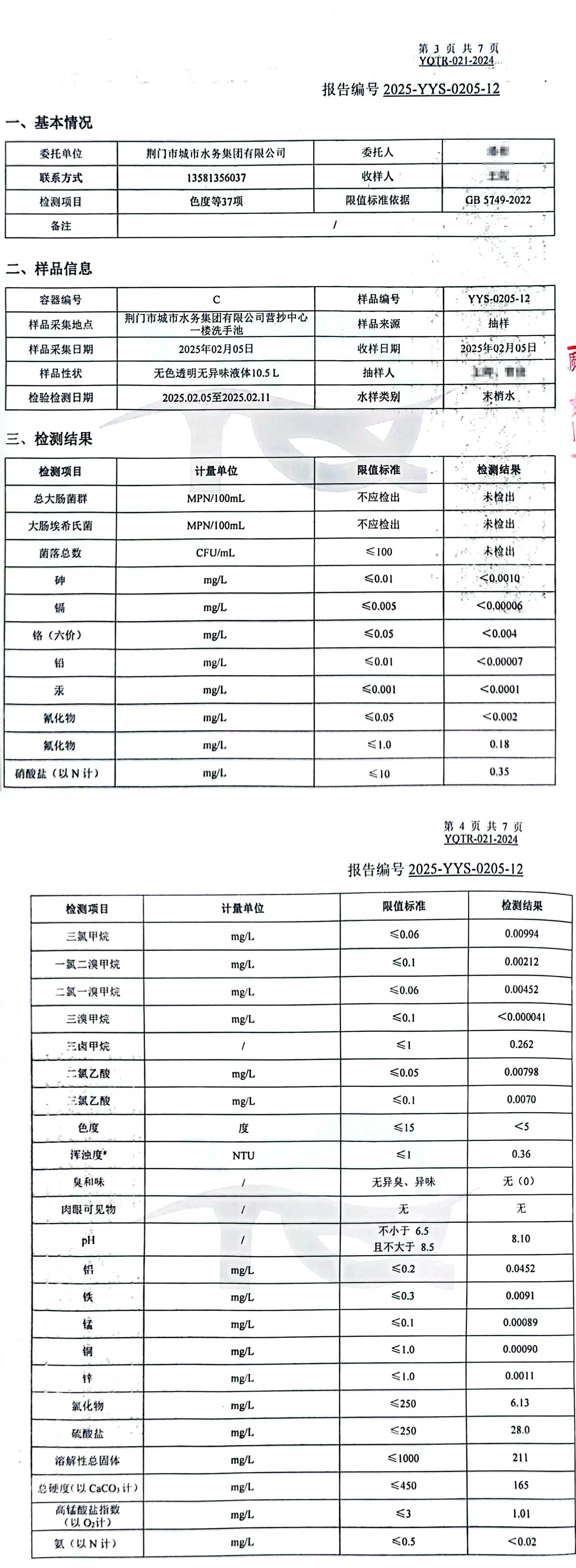 2025年2月,集團委托具有CMA認證資質(zhì)的第三方檢測機構(gòu),依據(jù)《生活飲用水衛(wèi)生標準》(GB5749-2022)對“四廠一站”出廠水、管網(wǎng)末梢水進行全分析檢測,水質(zhì)合格率100%。依據(jù)《地表水環(huán)境質(zhì)量標準(GB3838-2022)》檢測漳河原水,檢測結(jié)果為符合Ⅱ類標準。