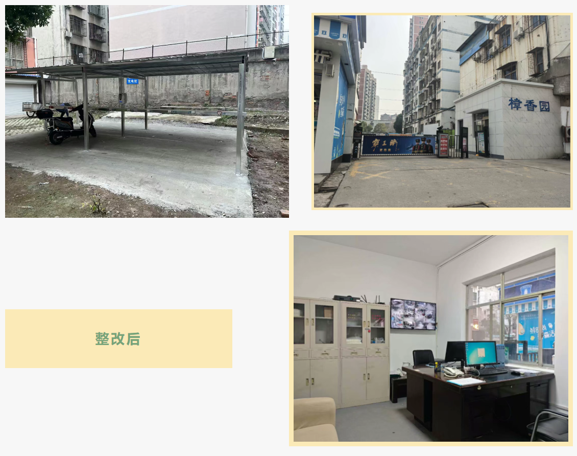 鑫泉物業(yè)公司對癥施策,改造物業(yè)辦公場所,設(shè)置便民窗口,實現(xiàn)公共區(qū)域監(jiān)控全覆蓋,新增太陽能路燈,更換樓道感應(yīng)燈,新建帶充電設(shè)施的非機動車棚,修剪綠植,清理雜物,小區(qū)環(huán)境煥然一新,居住體驗大幅提升。